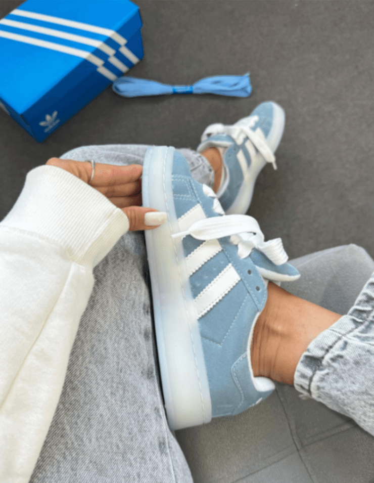 Tênis Adidas Campus Azul: conforto e estilo. Desenvolvido com materiais de alta qualidade, oferece maciez e segurança para os pés delicados, ideal para o uso diário. Perfeito para momentos de lazer, passeios e descanso, garantindo praticidade e tranquilidade para os pais.