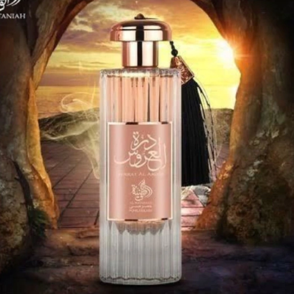O nome do perfume Durrat Al Aroos, de Al Wataniah, significa "Pérola" e "O encanto de noiva", o que define bem uma das características mais marcantes dessa fragrância: sua feminilidade e elegância. Sua mistura delicada e sofisticada de Orquídea, baunilha, Cumaru e notas de almíscar são combinadas com os aromas ousados do Sândalo e Âmbar, adicionando um toque sedutor a fragrância.Durrat Al Aroos faz parte da linha Dubai de Al Wataniah. Originário dos Emirados Árabes Unidos, Al Wataniah nasceu do desejo de entregar ao mundo elegantes fragrâncias com um toque místico, sedutor e de alta qualidade. Possui perfumes que combinam as melhores notas francesas com notas orientais, desenvolvidos por perfumistas de renome em todo o mundo. Suas combinações exclusivas são intensas e viciantes, cativando os que ousam se deixar seduzir por sua magia.